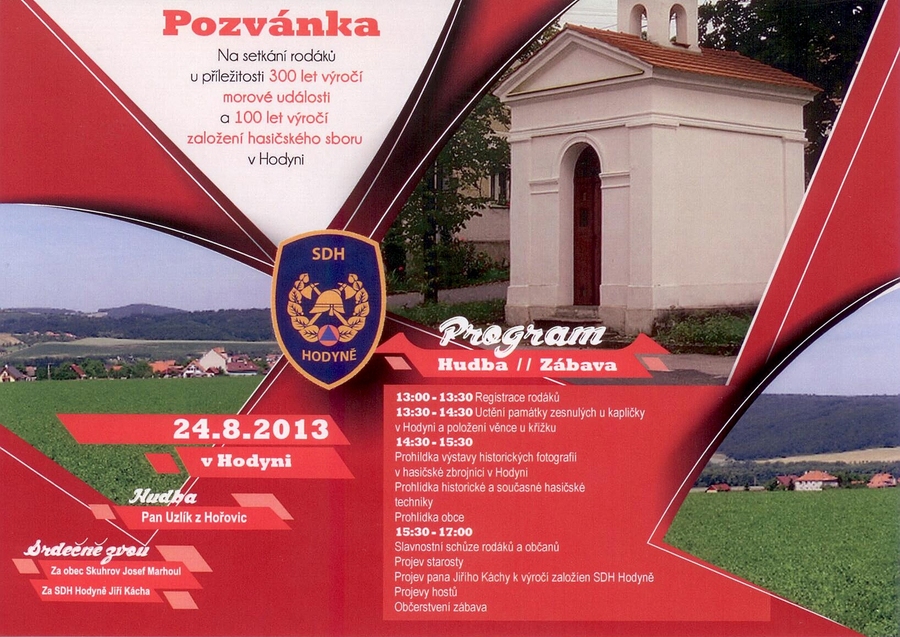 Setkání rodáků u příležitosti 300 let výročí morové události a 100 let výročí založení hasičského sboru v Hodyni.
